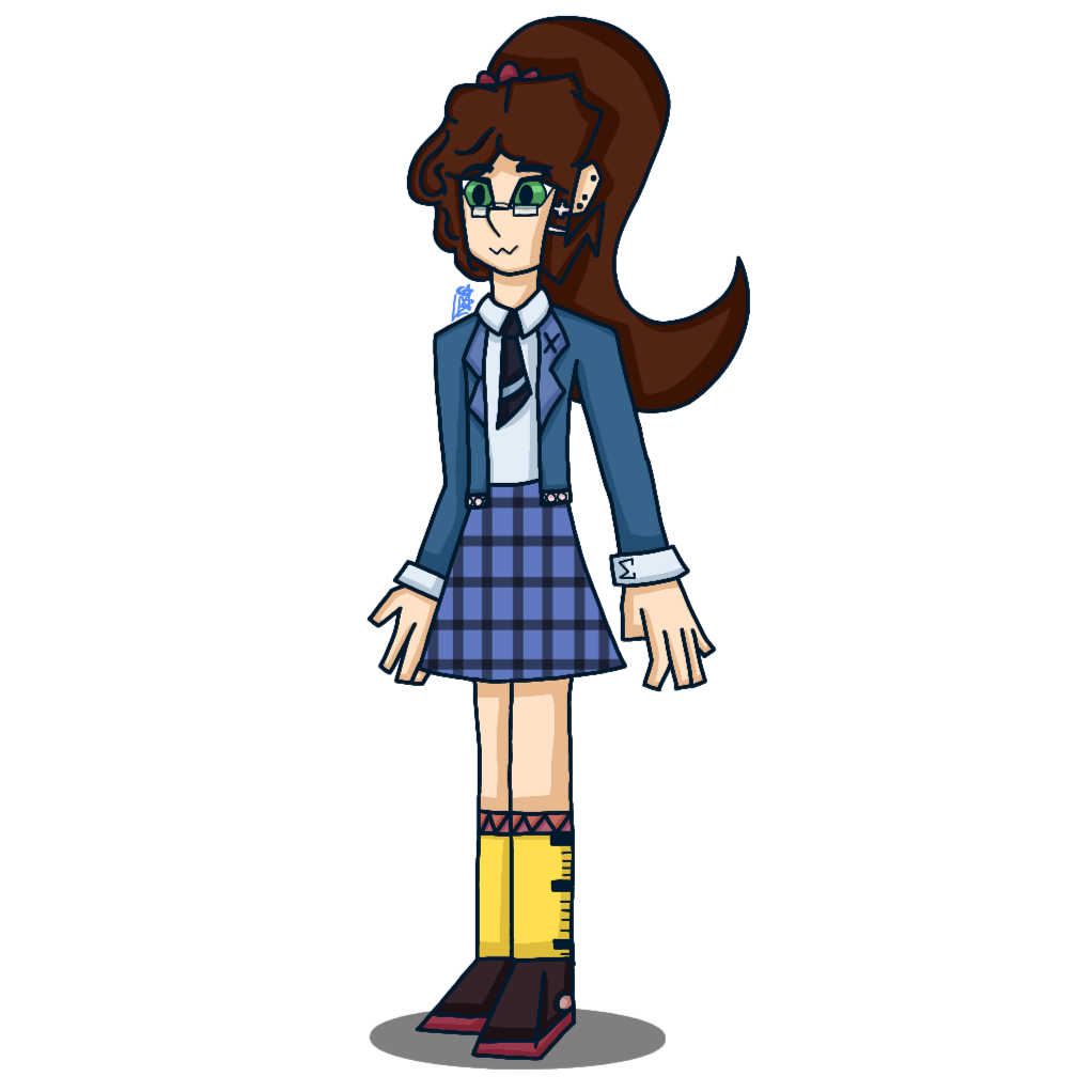 An enthusiastic graduate student, Math loves to learn new things and is always up for a challenge. She likes to study novel concepts, and takes great satisfaction in a job well done. She has a dream that one day she'll become a calculus teacher, since helping others understand mathematics makes her happy. Furthermore, she works in a team along with her other perseverant STEAM friends, Sci, Tech, Ginny and Art, to help them pursue study in all manner of fields. In her free time, you might see her work on her passion projects, play around with theorems, or draw geometrical shapes from time to time.